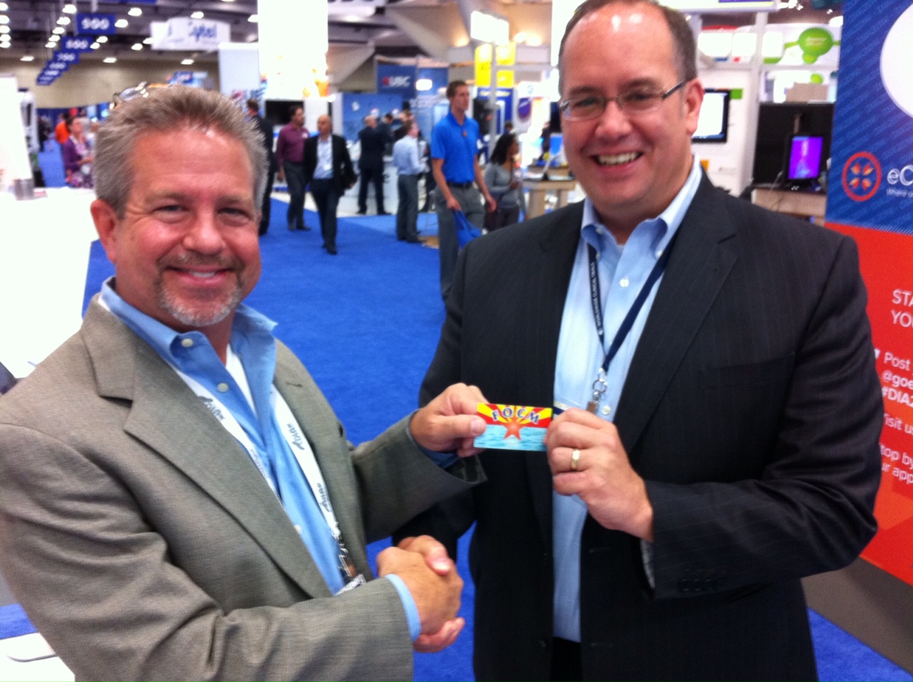 At the Drug Information Association Annual meeting in San Diego, Peter Benton received his FOCM card. This photo does not adequately capture the sheer joy that Peter experienced during the ceremony. Peter has been diligently working to complete the secret membership requirements for a couple of years. Having finally been deemed worthy, I surprised him with an impromptu card ceremony.