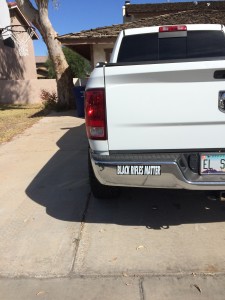 Bumper Sticker Spotted this bumper sticker on the back of a truck in Yuma, AZ. It reads: Black Rifles Matter Bumper Sticker spotted in Yuma, AZ