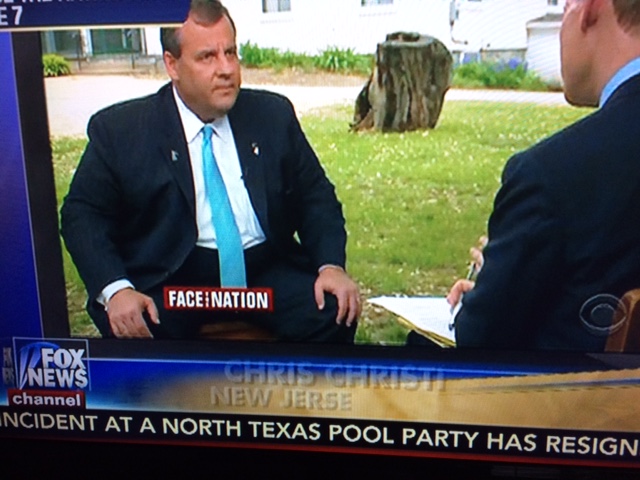 Face The Nation sign placement Saw this the other day on Fox News when they were showing a clip of Chris Christie when he was on Face The Nation recently. I thought it was amusing. Chris Christie Faces the Nation