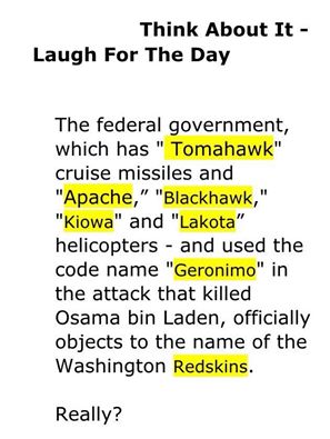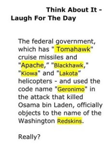 Isn’t this just perfect? Harry #reidisaliar Reid has recently begun spouting off again about the Washington Redskins. If it was really so disturbing to the politically correct, then they probably should be in an uproar about the names of military weaponry and code names.
