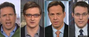 What is happening at MSNBC and FOX News? Has anyone noticed this: Fox News anchors and reporters in top 3 rows of collage and MSNBC anchors and reporters in bottom 3 rows of collage? WHAT?!?!