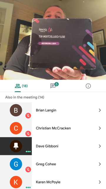 Screen Grab provided by Nadia BrackenScreen Grab provided by Nadia BrackenDave Gibboni showing the Pixel by LabCorp self collection kit for Covid-19 testing