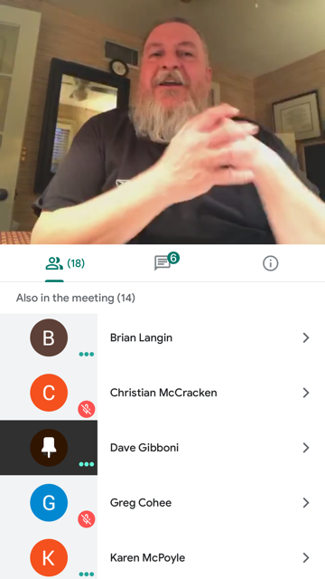 April 30: Paul Bilden, Israel Bocanegra, Mike Burrows, Clint Craun, Scott Freedman, Brian Langin, Dan Weddle, Amy Zastawney Observations: Two people had to exit early to attend other web calls, one for a birthday celebration – perhaps a glimpse of our future; night-time schedules of “virtual” meetings to stay in touch with friends, family and colleagues. I attended a friend’s birthday party on May 2 via Zoom.